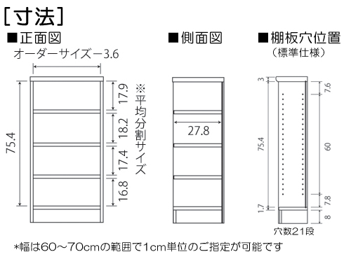 オープンA4カウンター下ラック 高さ88.1cm幅60~70cm奥行31cm 標準棚板1.7cm厚 オプション一覧