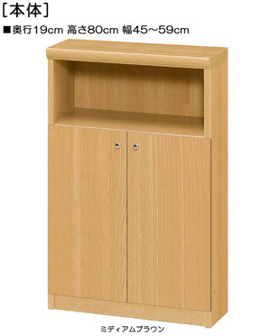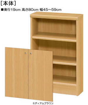 下扉付き薄型窓下ラック 高さ80cm幅45~59cm奥行19cm 標準棚板1.7cm厚 オプション一覧