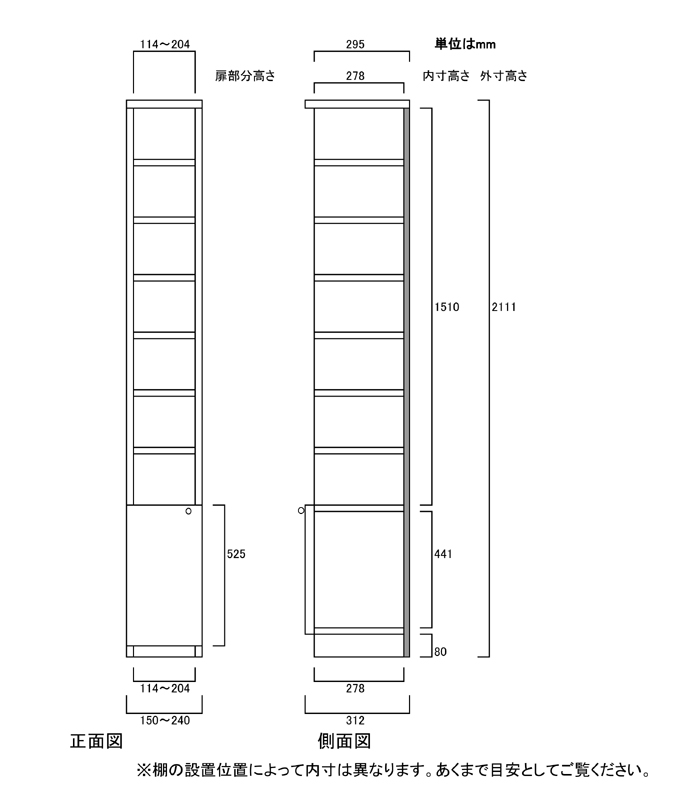 • ■外寸奥行31cm×高さ211.1cm×幅15~24cm(幅は1cm単位でオーダーできます)