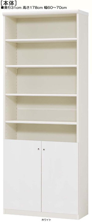下扉付きA4リビングラック 高さ178cm幅60~70cm奥行31cm 標準棚板1.7cm厚 オプション一覧
