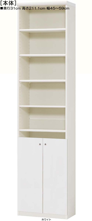 下扉付きA4書斎ラック 高さ211.1cm幅45~59cm奥行31cm 標準棚板1.7cm厚 オプション一覧