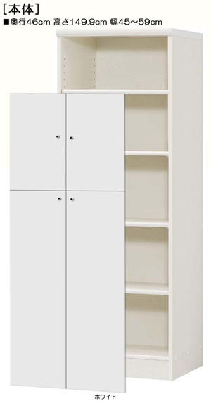 • 下扉付き奥深子供部屋ラック 高さ149.9cm幅45~59cm奥行46cm 標準棚板1.7cm厚 棚板耐荷重:5kg 扉高127.3cm