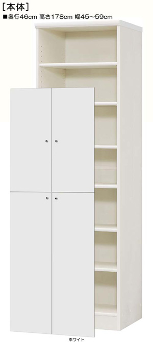 下扉付き奥深リビングラック 高さ178cm幅45~59cm奥行46cm 標準棚板1.7cm厚 オプション一覧