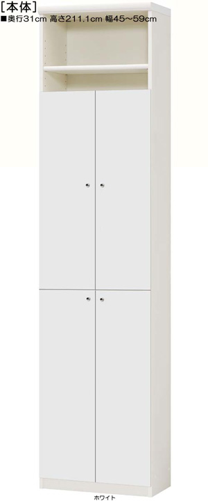 下扉付きA4書斎ラック 高さ211.1cm幅45~59cm奥行31cm 標準棚板1.7cm厚 オプション一覧