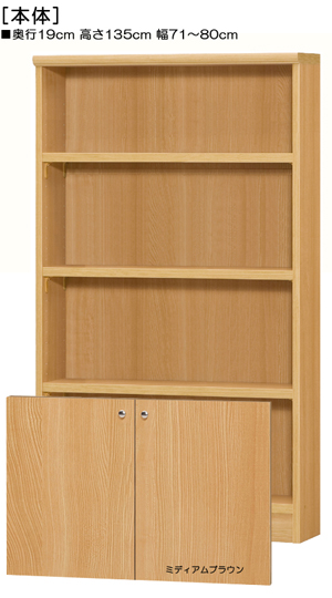 下扉付き薄型中二階頑丈ラック 高さ135cm幅71~80cm奥行19cm厚棚板 厚棚板2.5cm厚 オプション一覧