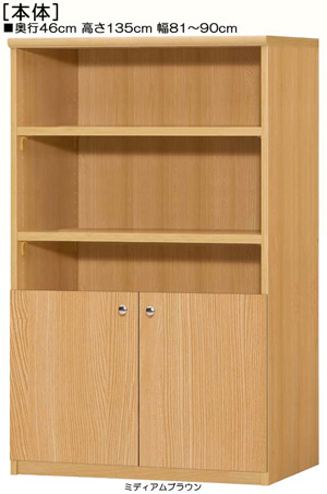 下扉付き奥深中二階頑丈ラック 高さ135cm幅81~90cm奥行46cm厚棚板 厚棚板2.5cm厚 オプション一覧