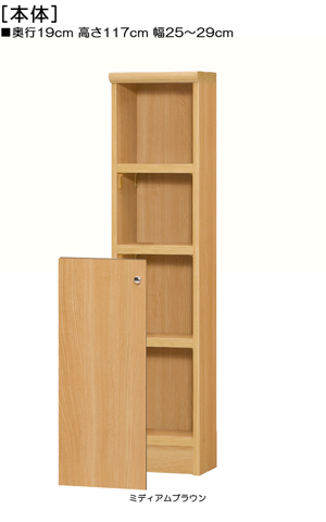 下扉付き薄型ロフト頑丈ラック 高さ117cm幅25~29cm奥行19cm厚棚板 厚棚板2.5cm厚 オプション一覧