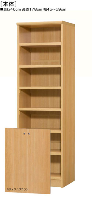 下扉付き奥深リビング頑丈ラック 高さ178cm幅45~59cm奥行46cm厚棚板 厚棚板2.5cm厚 オプション一覧
