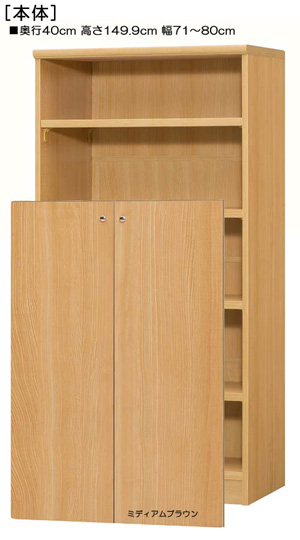下扉付きA3子供部屋頑丈ラック 高さ149.9cm幅71~80cm奥行40cm厚棚板 厚棚板2.5cm厚 オプション一覧