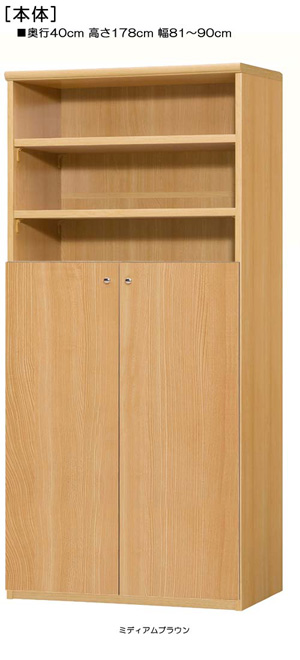 下扉付きA3リビング頑丈ラック 高さ178cm幅81~90cm奥行40cm厚棚板 扉高109.5cm