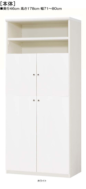下扉付き奥深リビング頑丈ラック 高さ178cm幅71~80cm奥行46cm厚棚板 厚棚板2.5cm厚 オプション一覧