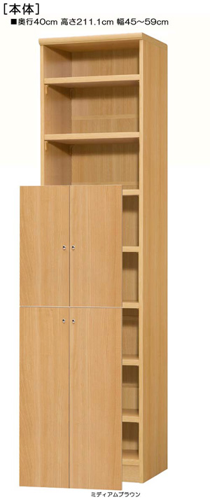 下扉付きA3書斎頑丈ラック 高さ211.1cm幅45~59cm奥行40cm厚棚板 厚棚板2.5cm厚 オプション一覧