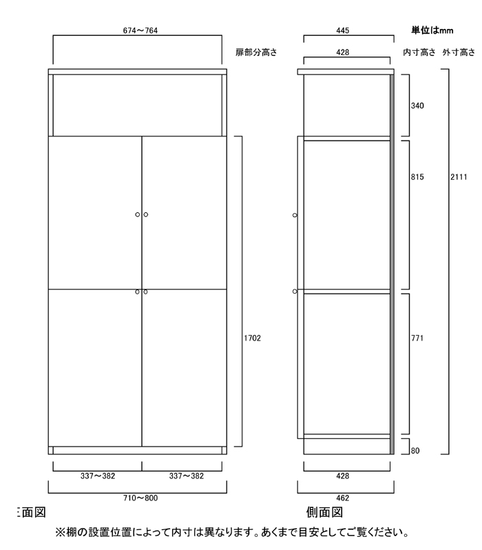 • ■外寸奥行46cm×高さ211.1cm×幅71~80cm(幅は1cm単位でオーダーできます)