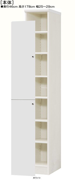 全面扉付き奥深リビングラック 高さ178cm幅25~29cm奥行46cm 標準棚板1.7cm厚 オプション一覧
