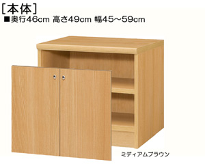 壁収納 扉付奥深ローボード頑丈ラック 高さ49cm幅45~59cm奥行46cm厚棚板 タフ棚板