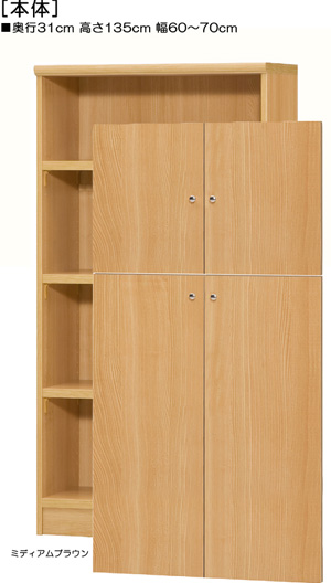 全面扉付きA4中二階頑丈ラック 高さ135cm幅60~70cm奥行31cm厚棚板 タフ棚板2.5cm厚 オプション一覧