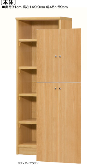 全面扉付きA4子供部屋頑丈ラック 高さ149.9cm幅45~59cm奥行31cm厚棚板 タフ棚板2.5cm厚 オプション一覧