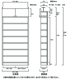 - ■外寸奥行19cm×高さ208~217cm×幅81~90cm(幅は1cm単位でオーダーできます)