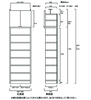 - ■外寸奥行31cm×高さ232~241cm×幅45~59cm(幅は1cm単位でオーダーできます)