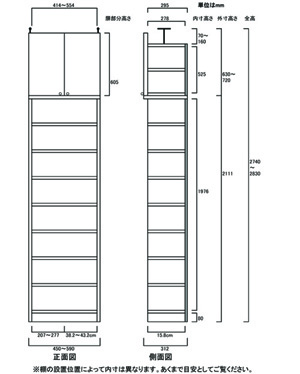 - ■外寸奥行31cm×高さ274.1~283.1cm×幅45~59cm(幅は1cm単位でオーダーできます)