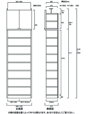 • ■外寸奥行31cm×高さ274.1~283.1cm×幅60~70cm(幅は1cm単位でオーダーできます)