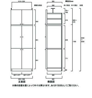 - ■外寸奥行40cm×高さ226~235cm×幅45~59cm(幅は1cm単位でオーダーできます)