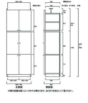 - ■外寸奥行40cm×高さ250~259cm×幅60~70cm(幅は1cm単位でオーダーできます)