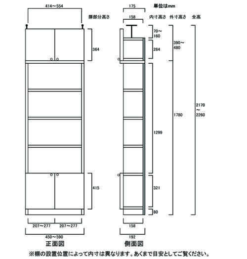 - ■外寸奥行19cm×高さ217~226cm×幅45~59cm(幅は1cm単位でオーダーできます)