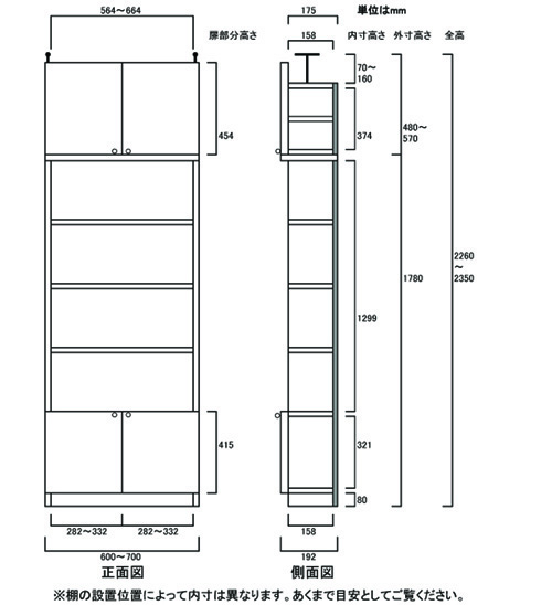 • ■外寸奥行19cm×高さ226~235cm×幅60~70cm(幅は1cm単位でオーダーできます)