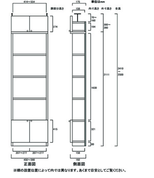 • ■外寸奥行19cm×高さ241.1~250.1cm×幅45~59cm(幅は1cm単位でオーダーできます)