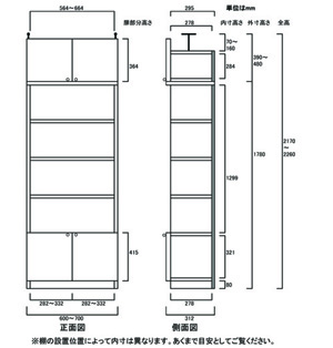 - ■外寸奥行31cm×高さ217~226cm×幅60~70cm(幅は1cm単位でオーダーできます)