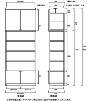 - ■外寸奥行40cm×高さ250~259cm×幅81~90cm(幅は1cm単位でオーダーできます)