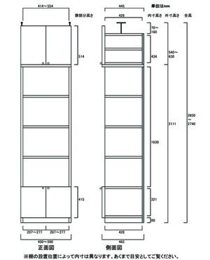 - ■外寸奥行46cm×高さ265.1~274.1cm×幅45~59cm(幅は1cm単位でオーダーできます)