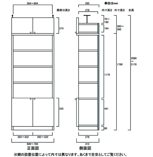 - ■外寸奥行31cm×高さ208~217cm×幅60~70cm(幅は1cm単位でオーダーできます)