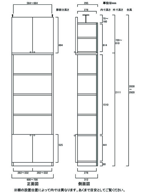 - ■外寸奥行31cm×高さ283.1~292.1cm×幅60~70cm(幅は1cm単位でオーダーできます)