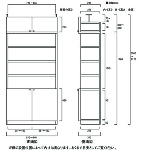 - ■外寸奥行31cm×高さ208~217cm×幅81~90cm(幅は1cm単位でオーダーできます)