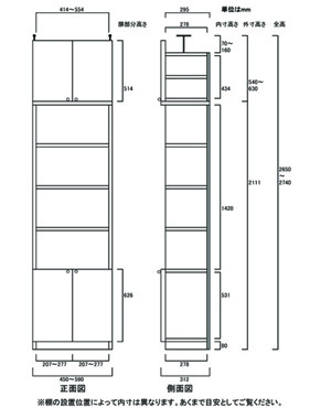 - ■外寸奥行31cm×高さ265.1~274.1cm×幅45~59cm(幅は1cm単位でオーダーできます)