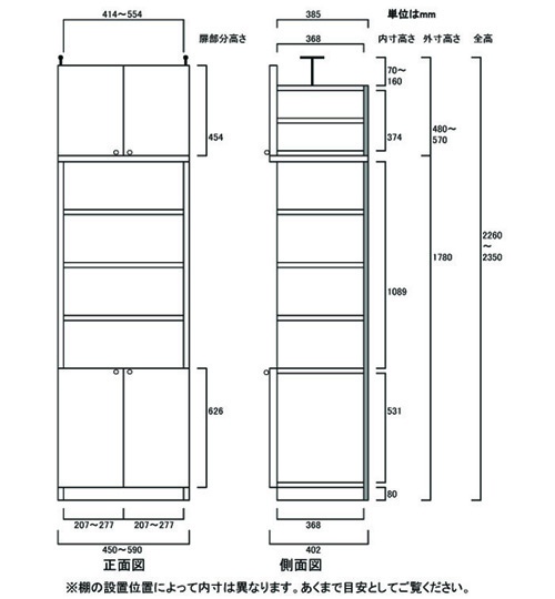 • ■外寸奥行40cm×高さ226~235cm×幅45~59cm(幅は1cm単位でオーダーできます)