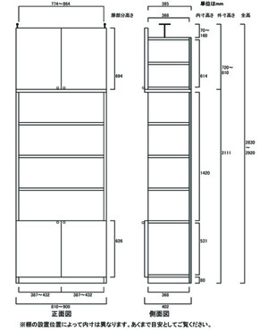 • ■外寸奥行40cm×高さ283.1~292.1cm×幅81~90cm(幅は1cm単位でオーダーできます)