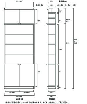 - ■外寸奥行19cm×高さ259.1~268.1cm×幅81~90cm(幅は1cm単位でオーダーできます)