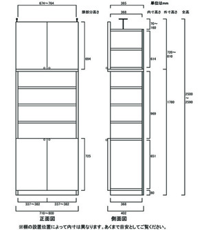• ■外寸奥行40cm×高さ250~259cm×幅71~80cm(幅は1cm単位でオーダーできます)