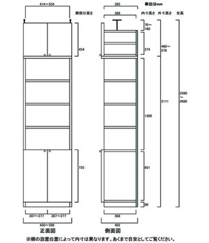 - ■外寸奥行40cm×高さ259.1~268.1cm×幅45~59cm(幅は1cm単位でオーダーできます)