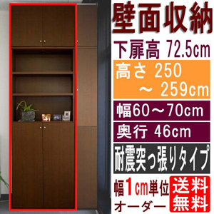 天井突っ張り奥深書架 奥行46cm×高さ250~259cm×幅60~70cm 本体下扉高 72.5cm
