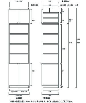 • ■外寸奥行46cm×高さ259.1~268.1cm×幅45~59cm(幅は1cm単位でオーダーできます)