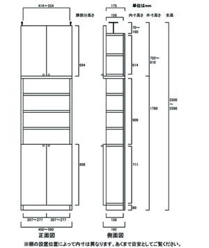 - ■外寸奥行19cm×高さ250~259cm×幅45~59cm(幅は1cm単位でオーダーできます)