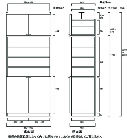 - ■外寸奥行46cm×高さ226~235cm×幅81~90cm(幅は1cm単位でオーダーできます)