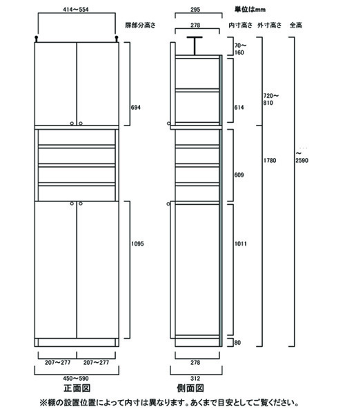 - ■外寸奥行31cm×高さ250~259cm×幅45~59cm(幅は1cm単位でオーダーできます)