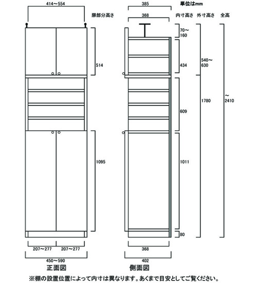 - ■外寸奥行40cm×高さ232~241cm×幅45~59cm(幅は1cm単位でオーダーできます)