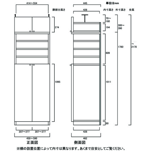 - ■外寸奥行46cm×高さ208~217cm×幅45~59cm(幅は1cm単位でオーダーできます)
