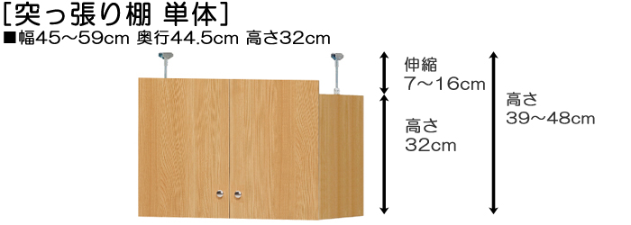 上置き棚奥深 高さ39~48cm幅45~59cm奥行44.5cm(本体奥行46cm用) タフ棚板2.5cm厚 オプション一覧